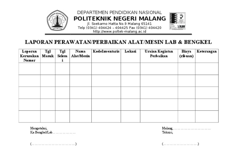 Contoh jadwal perawatan mesin. Jenis jenis maintenance perawatan mesinperalatan kerja yang dimaksud dengan maintenance adalah suatu kegiatan untuk merawat atau memelihara dan menjaga mesinperalatan dalam kondisi yang terbaik supaya dapat digunakan untuk melakukan produksi sesuai dengan perencanaan. Senin maret 12 2018. Contoh lembar checklist amdal gedung. Perawatan kompresor yang dilakukan secara benar akan mampu mengurangi tingkat kerusakan kompresor meningkatkan kualitas udara yang dihasilkan serta memperpanjang umur pakai kompresor life time. Contoh format checklist perawatan mesin. Rentang waktu perawatan ditentukan berdasarkan pengalaman data masa lalu atau rekomendasi dari pabrik pembuat mesin yang bersangkutan.