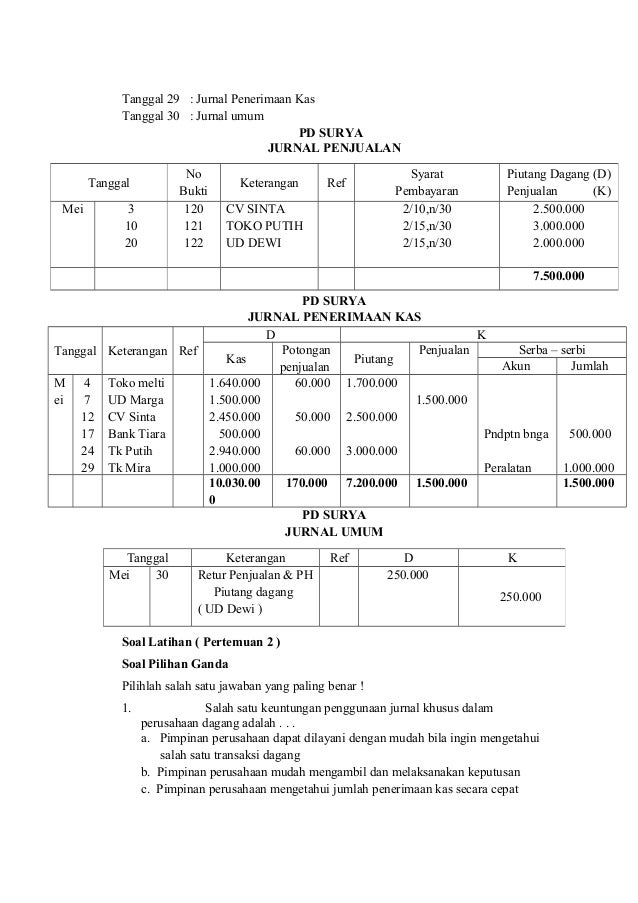 Menerima rhpp dan bukti memorial dari bagian kartu persediaan dan kemudian mencatatnya kedalam jurnal umum. Perhatikan contoh pencatatan jurnal penerimaan kas dari transaski penerimaan lain lain. 2000000 dengan potongan penjualan rp. Contoh dari penerimaan kas yang dimaksud adalah penerimaan uang tunai transfer dari perusahaan lain cek atau giro bilyet dan penyetoran langsung dari debitur ke bank perusahaan. Pada bulan oktober cv timbul memiliki transaksi transaksi yang berkaitan dengan penerimaan kas. Contoh jurnal khusus penjualan dan penerimaan kas.