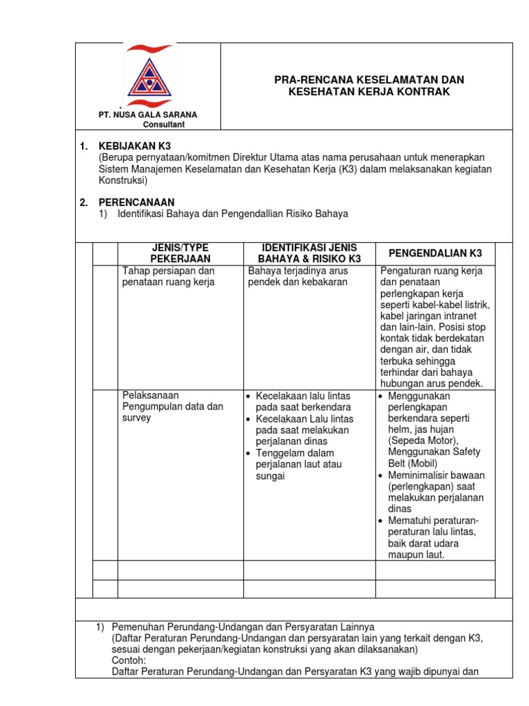 Rencana keselamatan konstruksi adalah dokumen lengkap prencana penerapan sistem manajemen keselamatan konstruksi smkk dan merupakan satu kesatuan dengan dokumen kontrak suatu pekerjaan konstruksi yang dibuat oleh penyedia jasa dan disetujui oleh pengguna jasa untuk selanjutnya dijadikan sebagai sarana interaksi antara penyedia jasa dengan pengguna jasa dalam penerapan smkk. Identifikasi bahaya penilaian risiko skala prioritas pengendalian risiko k3 dan penanggung jawab k3. Slogan slogan yang mengisyaratkan akan perlunya bekerja dengan selamat seperti contoh pada lampiran. Atasi bahaya anemia dengan fufang ejiao jiang. Risiko k3 konstruksi adalah ukuran kemungkinan kerugian terhadap keselamatan umum harta benda jiwa manusia dan lingkungan yang dapat timbul dari sumber. Ahli k3 konstruksipetugas keselamatan konstruksi 2 ahli teknik terkait ahli teknik sesuai bidangnya b.