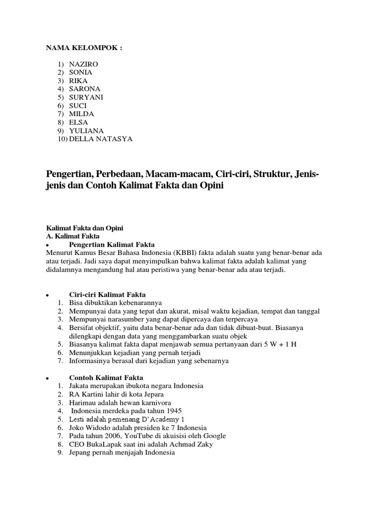 Contoh kalimat opini perorangan diantaranya. Seperti contoh berikut ini. Perbedaan kalimat fakta dan opini dalam sebuah paragraf. Ciri ciri kalimat fakta dan opini beserta contohnya dirinci secara lengkap dalam kalimat mulai dari pengertian jenis ciri dan contohnya. Contoh paragraf fakta donald trump terpilih menjadi presiden amerika serikat ke 45 setelah memenangkan pemilihan umum yang dilangsungkan pada hari selasa 8 november 2016 waktu setempat. Pada umumnya dalam penulisan teks berita terdapat contoh contoh yang berkaitan dengan kalimat fakta dan opini.
