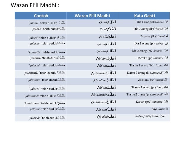 Fiil madhi kata kerja bentuk lampau. Kata kerja atau kalimah fil terbagi tiga. Tanda tandanya adalah dapat menerima ta fail dan ta tanits sakinah. Sebagian contoh fiil madhi mudhari dan amr di atas bisa menjadi acuan bagi sobat dalam memahami bahasa arab silahkan sobat belajar untuk membuat sendiri contoh kalimat fiil tersebut. Yang mana dalam pembahasan ini akan menerangkan tentang pengertian fiil beserta contohnya. Untuk lebih jelasnya silahkan simak ulasan berikut ini daftar isi 1 pengertian fiil madhi mudhori amar dan contohnya11 1.