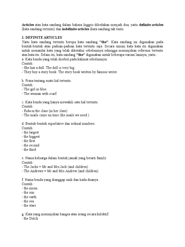 Kata sandang untuk menyatakan jumlah tunggal 1. Macam macam kata sandang dan contoh kalimatnya. Setelah sebelumnya kita membahas tentang kata ganti. Kata sandang merupakan kata yang tidak mempunya arti namun menjelaskan nomina kata benda.