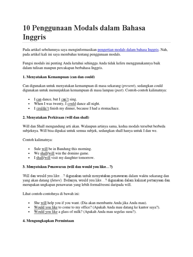 Bentuk modal auxiliary verb sendiri dianggap sebagai kata kerja bantu mengekspresikan berbagai bentuk kalimat untuk meminta izin barang atau jasa. Biasanya diawali dengan bentuk modal.