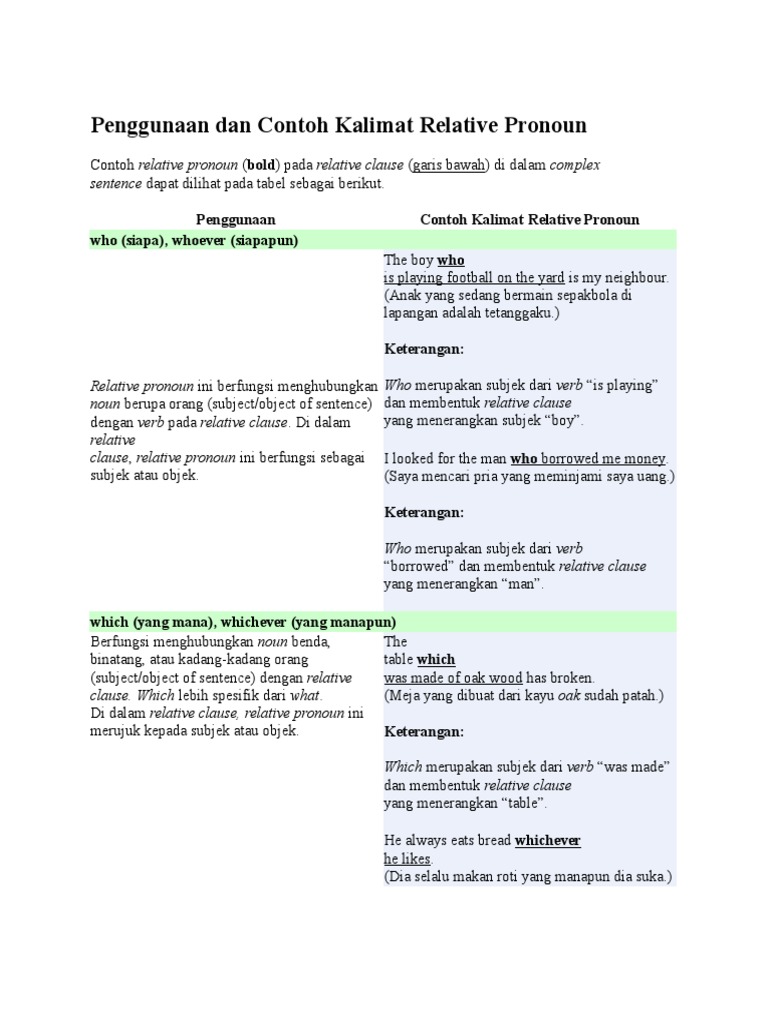 Pengertian dan contoh kalimat. Setelah membahas mengenai pengertian jenis jenis dan juga rumusnya berikut penulis akan memberikan contoh contoh kalimat agar lebih mudah dimengerti. Artikel ini membahas lengkap penjelasan serta contohnya sehingga kamu semakin paham tentang adjectiverelative clause. Namun supaya lebih mudah mengidentifikasi penggunaan 5 kata ganti di atas kita bisa menggunakan rumusan rumusan yang sederhana. Pemakaian that bisa diperuntukkan untuk orang ataupun benda. Contoh kalimat relative pronouns 1.