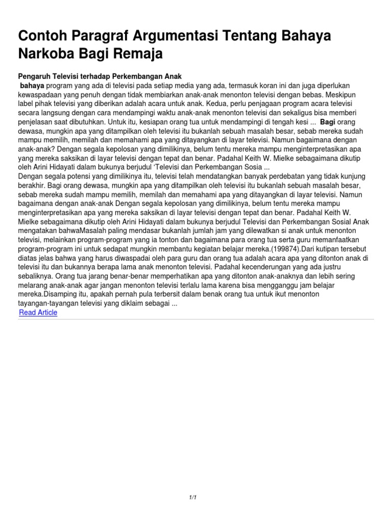 Informasi yang disertakan dalam karangan eksposisi merupakan data faktual dan dapat dipertanggungjawabkan kebenarannnya. 22 tahun 1997 tentang narkoba yaitu zat atau obat yang berasal dari tanaman atau bukan tanaman baik sintetis maupun semi sintetis. Klik di sini untuk informasi file lengkap karangan argumentasi tentang bahaya narkoba selengkapnya. Contoh karangan argumentasi. Adapun contoh paragraf argumentasi tentang narkoba dalam bahasa indonesia adalah sebagai berikut. Narkoba dan bahkan seks bebas.