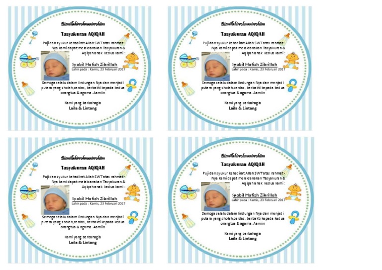Contoh kartu ucapan aqiqah. Preview contoh kartu ucapan aqiqah bayi pada berkat kotak nasi pada halaman ms. Kartu ucapan aqiqah selapanan tutorial photoshop youtube. Contoh kartu ucapan aqiqah bisa diedit. Contoh desain kartu ucapan aqiqah pada acara tasyakuran atas kelahiran bayi umat nabi muhammad saw dianjurkan untuk melaksanakan aqiqah. Contoh kartu ucapan aqiqah dalam berkat. Biasanya kartu ucapan ini diletakkan di dalam kotak nasi yang diberikan kepada pengunjung atau tamu yang hadir.
