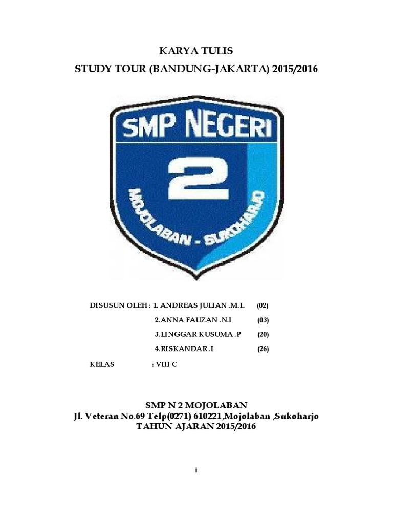 Contoh karya tulis study tour. Xdlmxdhansheia3 yang meliputi kota kota berikut cirebon yogyakarta semarangdisusun oleh. Semoga karya tulis yang berjudul perjalanan study tour jakarta memberikan manfaat bagi masyarakat pada umumnya dan pembaca pada khususnya serta dapat membantu meningkatkan harkat dan martabat bangsa kita dalam membangun bangsa indonesia tercinta ini. Dede adi nugraha anton sudarwanto moch edwin op fachri nurimanudin azis usadi muhammad sandi mkarya tulis ini dibuat untuk memenuhi laporan kegiatan study tour dan sekaligus memenuhisalah satu tugas mata pelajaran bahasa indonesiapemerintah kabupaten. Latar belakang budaya jawa sebenarnya sangat banyak dan beragam. Puji syukur kehadirat tuhan yang maha esa atas segala limpahan rahmat inayah taufik dan hidayahnya sehingga saya dapat menyelesaikan penyusunan laporan hasil karya tulis study tour ke jakarta bandung ini dalam bentuk maupun isinya yang sangat sederhana. Anda dapat mempelajari berbagai contoh lengkap karya tulis yang anda butuhkan disini.