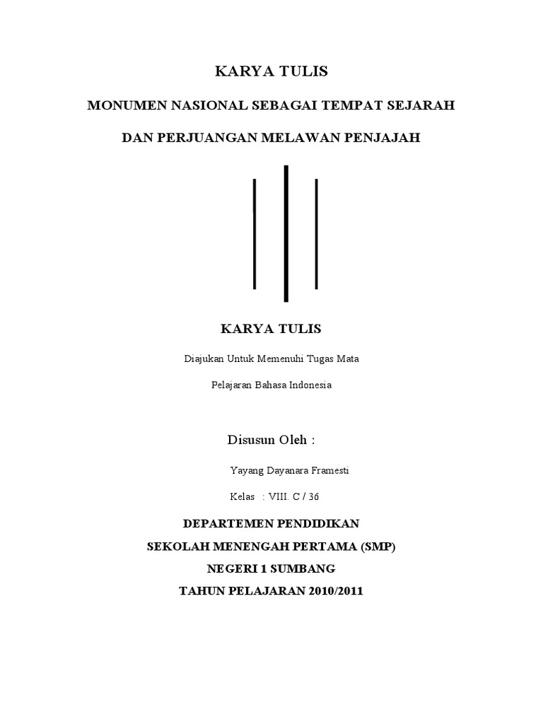 Contoh laporan perjalanan study tour formal. Puji syukur ke hadirat tuhan yang maha esa dengan limpahan karunia nya karya tulis ilmiah sederhana ini dapat terselesaikan secara maksimal dan didukung oleh keluarga sayabapak dan ibu guru panitia penyelenggara karya wisata serta ibu sri madu ratnawati spd. Dengan adanya contoh format penulisan karya tulis study tour sekolah tersebut diharapkan siswa dapat membuat karya tulis sesuai dengan dasar serta aturan yang ada. Karya tulis yang berjudul perjalanan study tour bali pada dasarnya merupakan persyaratan dan tugas akhir di kelas xi semester ii tahun ajaran 20132014 ini karya tulis ini berisikan perjalanan study tour bali yang serta rangkuman keanekaragaman objek wisata yang telah penulis kunjungi di pulau dewata. Silahkan cari yang anda butuhkan terima kasih. Monumen nasional monas disusun sebagai salah satu mengikuti un ujian nasional di smp n 1 karangmoncol.