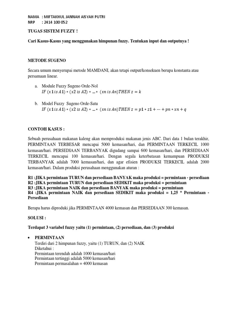 Contoh Soal Logika Fuzzy Metode Sugeno Bagikan Contoh