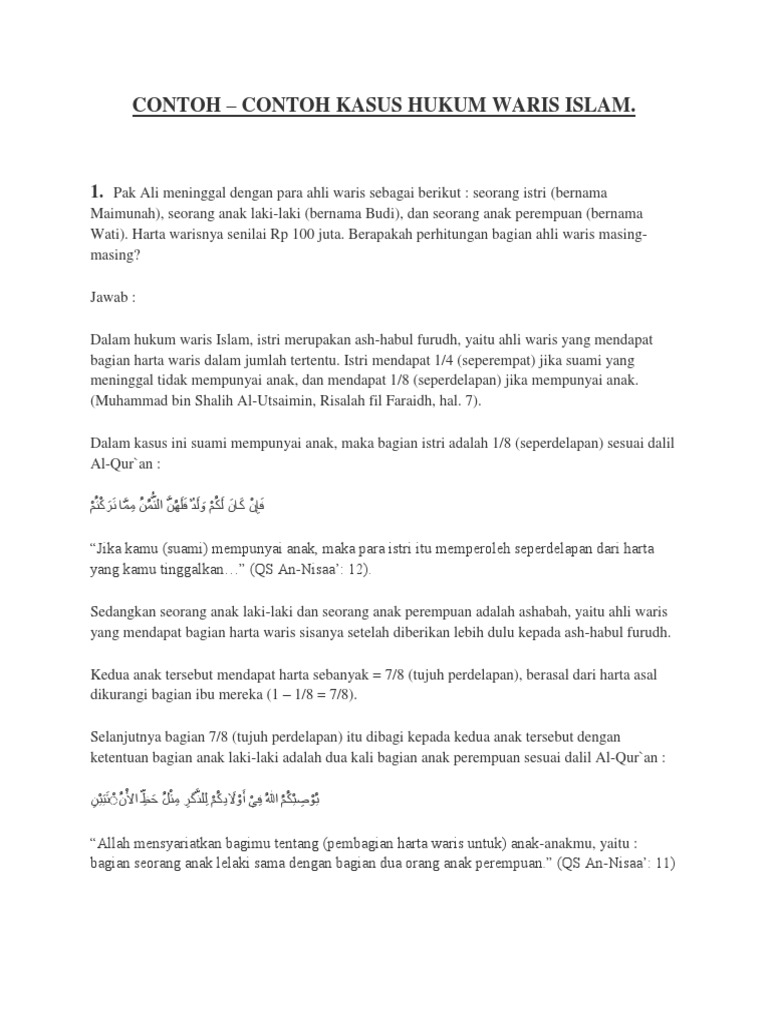 Contoh kasus hukum perdata internasional sengketa warisan merupakan jenis perkara yang relatif sering terjadi dan membutuhkan jalan penyelesaian simaka selengkapanya dalam artikel berikut ini. Contoh kasus hukum perdata tentang warisan pembagian warisan bagi anak diluar nikah diakui contoh kasus. Contoh soal pembagian harta warisan dan cara perhitungannya seorang laki laki wafat dan meninggalkan warisan uang sebesar rp.