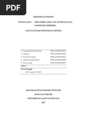 Dalam banyak kasus impuls id itu dapat dipenuhi melalui proses menunda kepuasan ego pada akhirnya akan memungkinkan perilaku tetapi hanya dalam waktu yang tepat dan tempat. View kasus lim part 1pdf from unsika 2017 at singaperbangsa university. Metode umum yang ditampilkan pada tabel 31 dapat digunakan sebagai alat bantu dalam mempelajari dan mengaplikasikan kemampuan pemodelan. Endang widuri asih st mt. Pemodelan sistem dalam teknik industri sebetulnya lebih luas dan secara fundamental bersifat mengenalkan. Pemodelan sistemteknik industri 1.
