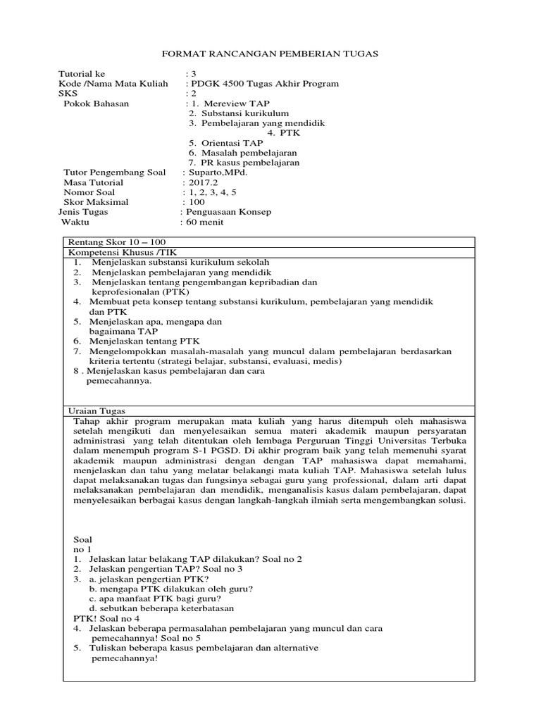 Kasus pak sartono ipa ilmu pengetahuan alam tata surya pak sartono mengajar di kelas 6 sd setiabakti. Setelah mengucapkan salam dan menanyakan siapa yang tidak hadir pak sartono menyampaikan bahwa hari ini. Contoh soal tap kasus pembelajaran ipa. Hanya 6 siswa dari 30 siswa yang mencapai ketuntasan belajar mencapai kkm 70. Mereka berlarian dan berebutan ke depan kelas untuk melihat gambar yang ditunjukkan bu ana. Tugas akhir program tap adalah tugas yang harus dikerjakan mahasiswa program sarjana s 1 yang sudah memenuhi persyaratan baik administrai maupun akademik.
