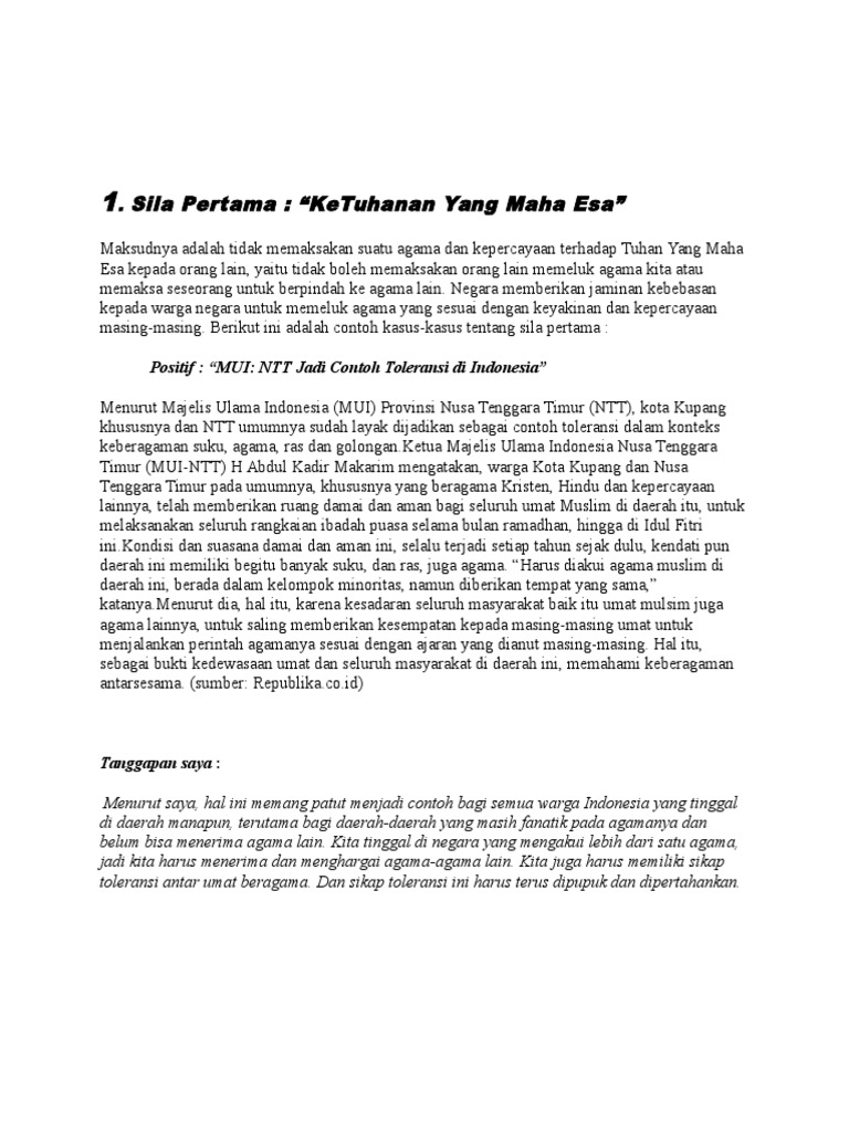 Contoh kasus toleransi antar umat beragama. Contoh budaya toleransi di antaranya panitia yang bertugas pada perayaan hari besar umat kristen adalah umat islam begitu juga sebaliknya. Baik pihak gereja maupun pihak masjid saling menghargai dan memberikan kesempatan untuk menjalankan ibadah dengan khusyuk dan lancar bagi masih masing pemeluknya. Hal tersebut merupakan contoh kecil toleransi antarumat beragama yang hingga saat ini terus dipelihara. Wujud toleransi antarumat beragama ini juga kerap dilakukan umat kristiani saat perayaan malam takbiran di ambon. Contoh sikap toleransi antar umat beragama yang banyak diimplementasikan oleh berbagai agama dan berbagai masyarakat di dunia. Tahun ini agak sedikit berbeda karena ada juga saudara kita umat hindu yang ikut berpartisipasi menjaga gereja.