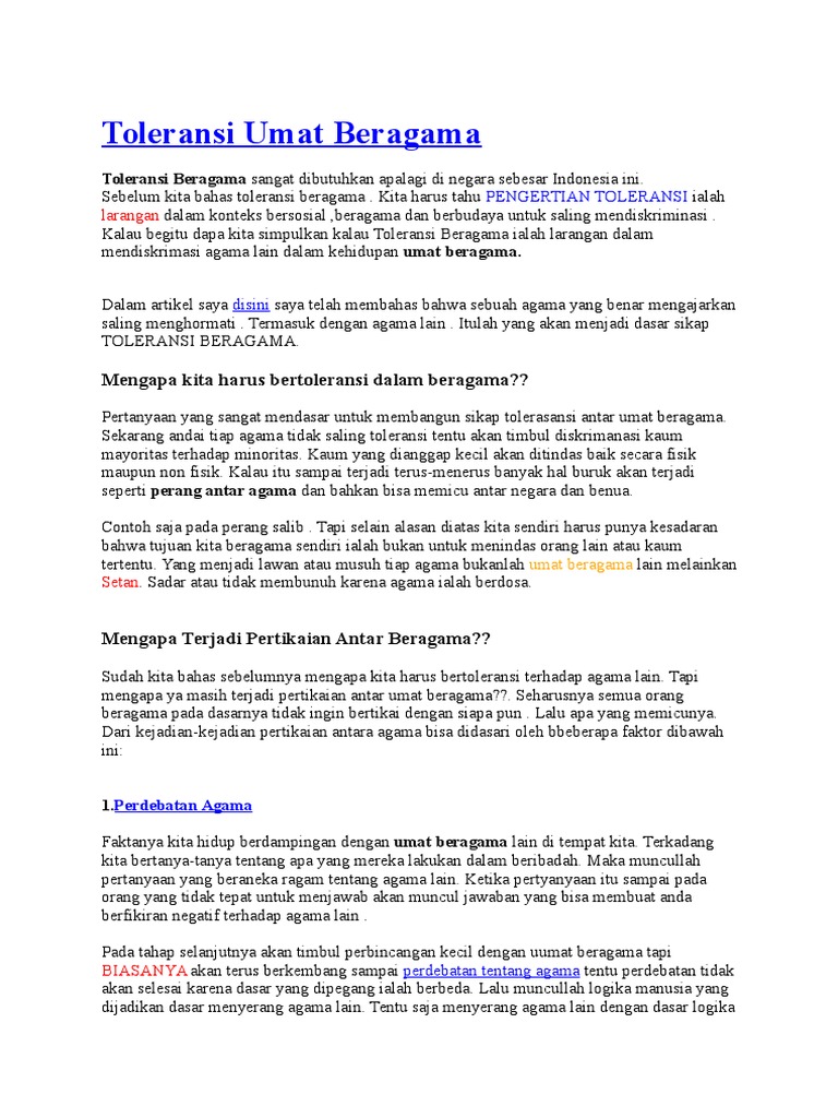 Toleransi antarumat beragama di kabupaten tambrauw papua barat menjadi contoh yang indah. Seandainya terdapat oknum tertentu yang akan mengusik kerukunan antar umat beragama di tempat tersebut baik pihak masjid. Untuk menjaga persatuan antar umat beragama maka diperlukan sikap toleransidalam kamus besar bahasa indonesia sikap memiliki arti perbuatan dsb yang berdasarkan pada pendirian dan atau keyakinan sedangkan toleransi berasal dari bahasa latin yaitu tolerare artinya menahan diri bersikap sabarmembiarkan orang berpendapat lain dan berhati lapang terhadap orang orang yang memiliki pendapat. Umat islam di tambraw papua bantu umat kristen saat perayaan hari besar. Tentu ke depan kami berharap toleransi yang sangat baik ini akan terus dijaga kata richard.