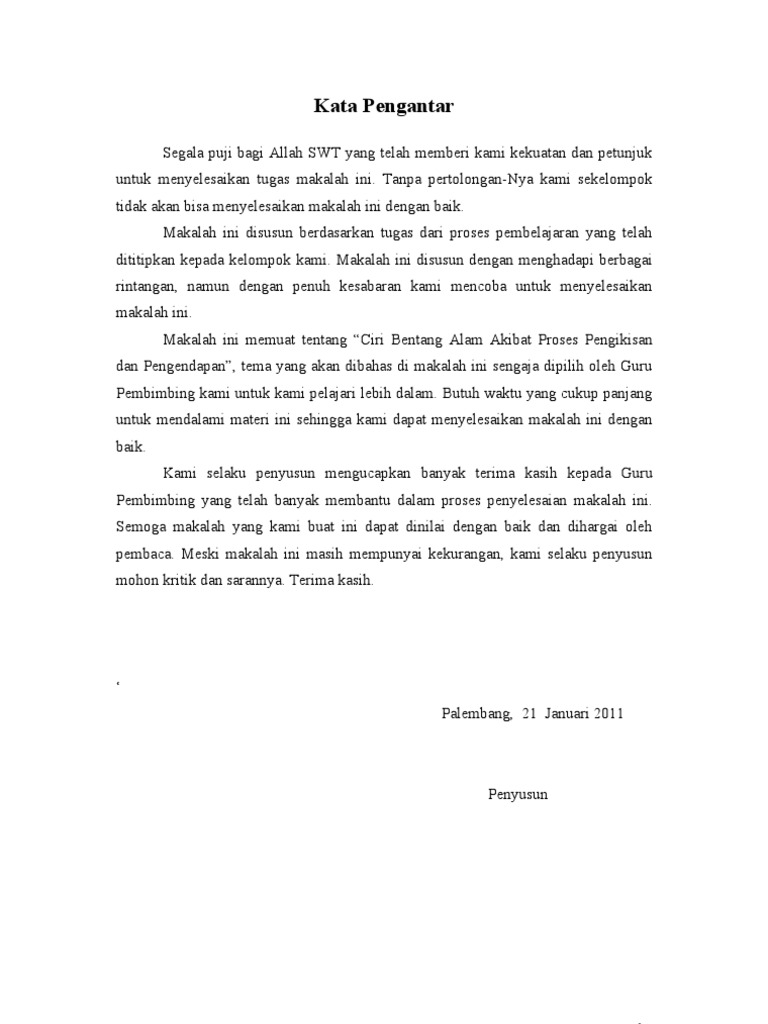 Contoh kata pengantar makalah. Dalam hal pembuatannya tentunya ada tata caranya mulai dari teknik penulisan makalah format halaman spasi ukuran kertas. Kata pengantar puji syukur kami panjatkan kehadirat tuhan yang maha esa karena kami dapat menyelesaikan makalah ini. Contoh kata pengantar makalah dunia penulisan memang sangat menarik untuk didalami apalagi bagi anda yang sangat tertarik untuk menjadi penulis profesionalmenulis tidak selalu berhubungan dengan novel cerpen dan sejenisnya tetapi juga bisa dalam bentuk makalah. Tapi kata pengantar juga sering dipakai pada sebuah bukukata pengantar adalah kata kata perkenalan untuk sebuah buku.