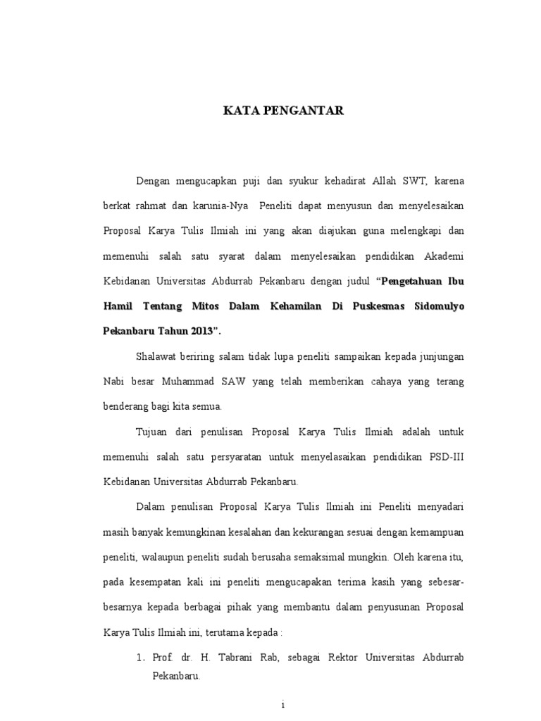 Contoh kata pengantar proposal dalam penulisan tugas akhir atau proposal skripsi anda siapkan terlebih dahulu panduan tugas akhir yang diterbitkan oleh perguruan tinggi anda. Contoh kata pengantar proposal penelitian kata pengantar puja dan puji syukur saya panjatkan kepada tuhan yang maha esa atas segala karunia nikmat serta hidayahnya sehingga saya dapat menyusun proposal penelitian yang berjudul sintesis dan karakterisasi zeolit y dari lumpur lapindo dengan variasi suhu hidrotermal menggunakan metode sol gel dengan lancar dan tepat waktu. Langkah selanjutnya yaitu anda bisa menyiapkan draft awal untuk penyusunan proposal dengan sistematika yang sesuai dengan kampus anda. Ketika anda menyusun sebuah laporan ilmiah baik itu laporan kegiatan umum laporan praktikum laporan observasi dan laporan penelitian serta laporan kerja praktek lapangan salah satu hal yang perlu untuk anda perhatikan pula adalah kata pengantar. Contoh kata pengantar proposal penelitian contoh kata pengantar proposal penelitian 1 puji dan syukur penulis panjatkan kepada tuhan.