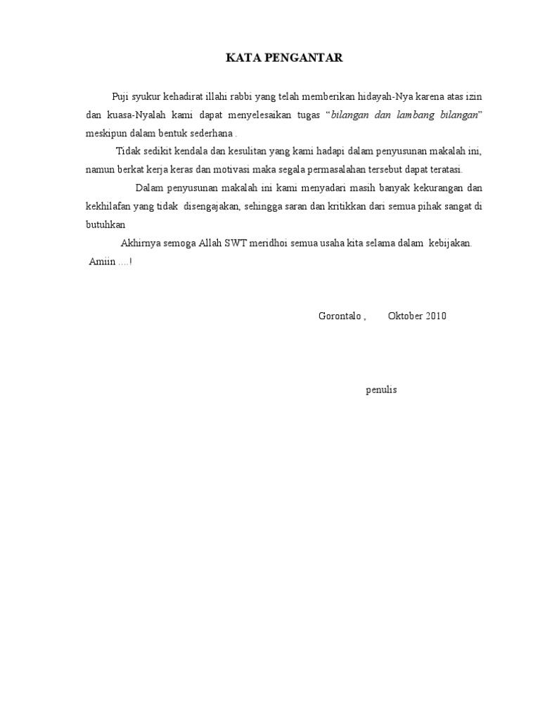 Nah bagi kamu yang kesulitan membuatnya di bawah ini akan banyak contoh kata pengantar untuk berbagai karya tulis yang dapat. Karena makalah atau laporan akan terlihat kurang baik dan lengkap bila tidak disertai dengan ucapan kata pengantar di dalamnya. Kami panjatkan puji syukur kehadirat nya yang telah melimpahkan rahmat hidayah serta inayah nya kepada kami sehingga kami bisa menyelesaikan makalah ilmiah tentang limbah dan manfaatnya untuk masyarakat. Contoh kata pengantar makalah singkat 1. Contoh kata pengantar ini sangat singkat namun telah mengikuti aturan yang benar. Dalam kata pengantar ini biasanya terdapat ucapan syukur atas terselesaikannya sebuah karya tulis yang dipanjatkan kepada tuhan yang maha esa.