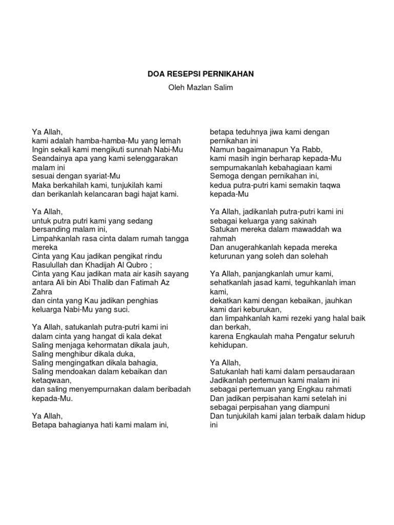 Kebetulan saya sangat memerlukan contoh kata sambutan krn saya diminta oleh orangtua calon pengantin utk memberikan kata sambutan dalam pernikahan keponakan saya. Selain itu dalam kata sambutan juga akan digambarkan rasa bahagia yang ingin. Mapag pengantin sambutan dan doa resepsi ucapan selamat foto. Kata sambutan ini biasanya pula menjadi sarana untuk menyampaikan nasehat untuk kedua mempelai dan menjadi sarana untuk menyampaikan bahwa mempelai laki laki tersebut sudah menjadi bagian dari keluarga mempelai wanita. Resepsi merupakan bentuk ungkapan syukur keluarga pasca akad nikah berlangsung. Dalam kata sambutan ini terdapat makna yang cukup mendalam dimana tuan tamu membuka pintu selebar lebarnya untuk menyambut para tamu.