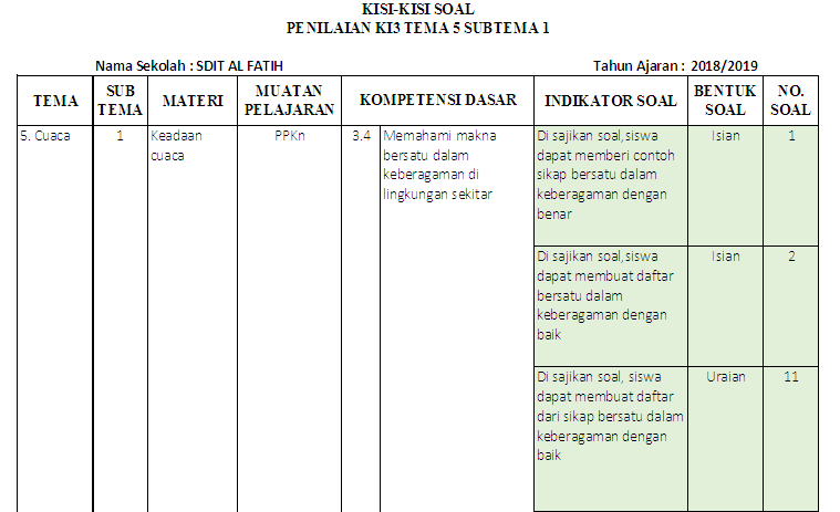 Kisi kisi test blue print atau table of specification merupakan deskripsi kompetensi dan materi yang akan diujikan. Kisi kisi dapat berbentuk format atau matriks seperti contoh berikut ini. Membandingkan siklus hidup beberapa jenis makhluk hidup. Inilah contoh format kisi kisi soal kurikulum 2013 revisi 2019 sebagai referensipelengkap administrasi guru terkait dengan evaluasi dan penilaian siswa. Kumpulan kisi kisi soal dan contoh soal uts kelas 1 sd 6 sdmi lengkap hallo sahabat chord gitar indonesia pada sharing kunci gitar kali ini yang berjudul kumpulan kisi kisi soal dan contoh soal uts kelas 1 sd 6 sdmi lengkap saya telah menyediakan lirik lagu lengkap dengan kord gitarnya dari awal lagi sampai akhir lagu. Contoh kisi kisi dan soal uts i kurikulum 2013.