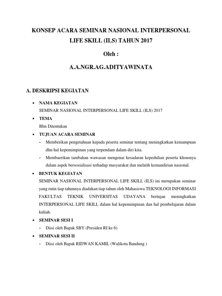 Contoh konsep acara seminar yang menarik. Demikian seminar nasional hari inimarilah kita tutup acara ini bersama sama dengan membaca hamdallah. Konsep event menarik takkan berarti apabila calon pengunjung tak mendapatkan informasi yang cukup mengenai event anda. Akan tetapi secara garis besar bila pelaksanaan seminar dilakukan dengan sehari penuh maka seminat yang dijalankan haruslah ada jadwal megenai coffer break atau waktu istirahat untuk pelaksanaan sholat makan atau lain sebaginya. Cara membuat konsep acara yang menarik bak seorang event organizer profesional. Bintang tamu dan susunan acara yang menarik staf yang ramah dan lain lain. Mohon maaf jika ada kesalahan dalam berlangsungnya acara baik disengaja maupun tidak disengaja.