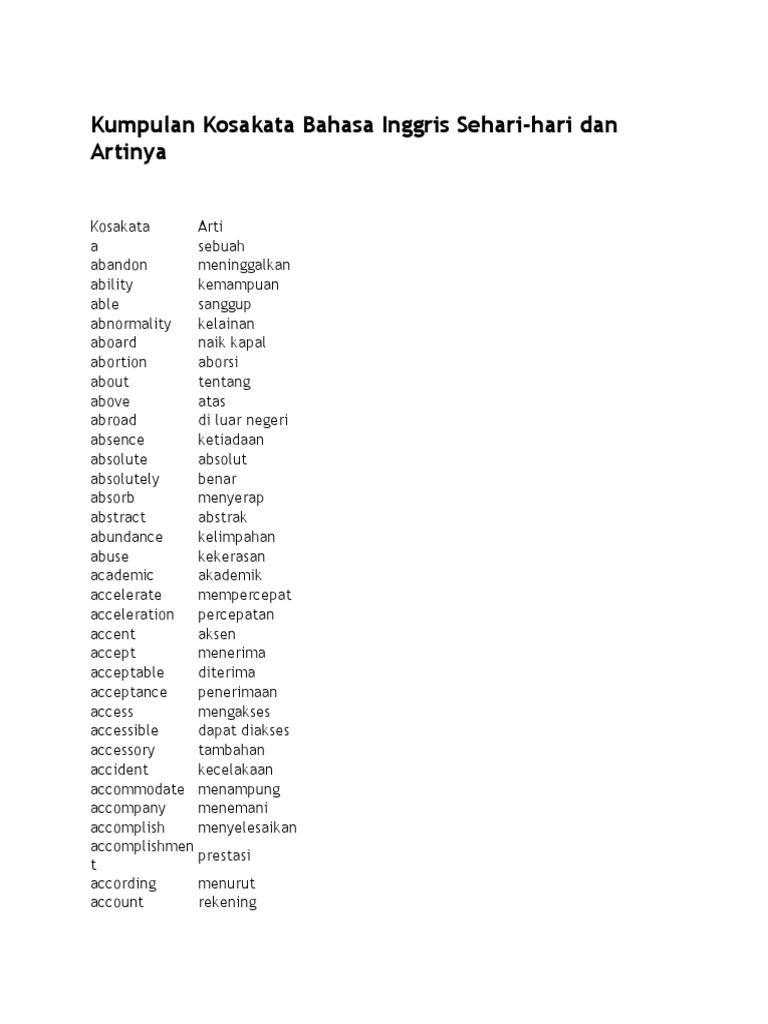 1001 contoh kalimat bahasa inggris dalam kehidupan sehari hariartinya. Berdasarkan hasil penelitian tim dari harvard university dan tim google mengatakan bahwa penambahan kosakata bahasa inggris mencapai 8500 kata per tahun. Dengan mengetahui lebih banyak kata sifat anda akan lebih mudah mengungkapkan keadaan diri sendiri maupun mendeskripsikan keadaan suatu benda. Mempelajari kosakata adalah cara mudah belajar bahasa inggris untuk pemula sebagai langkah pertama agar lancar bahasa inggris. 954 contoh kosakata bahasa indonesia pengertian menurut para ahli jenis untuk pembahasan kali ini kami akan mengulas mengenai kosakata yang dimana dalam hal ini meliputi contoh pengertian menurut para ahli dan jenis untuk lebih memahami dan mengerti simak ulasan dibawah ini. Bagi kamu pemula yang ingin mempelajari bahasa inggris baik dalam speaking berbicara atau pun writing menulis dalam bahasa inggris.