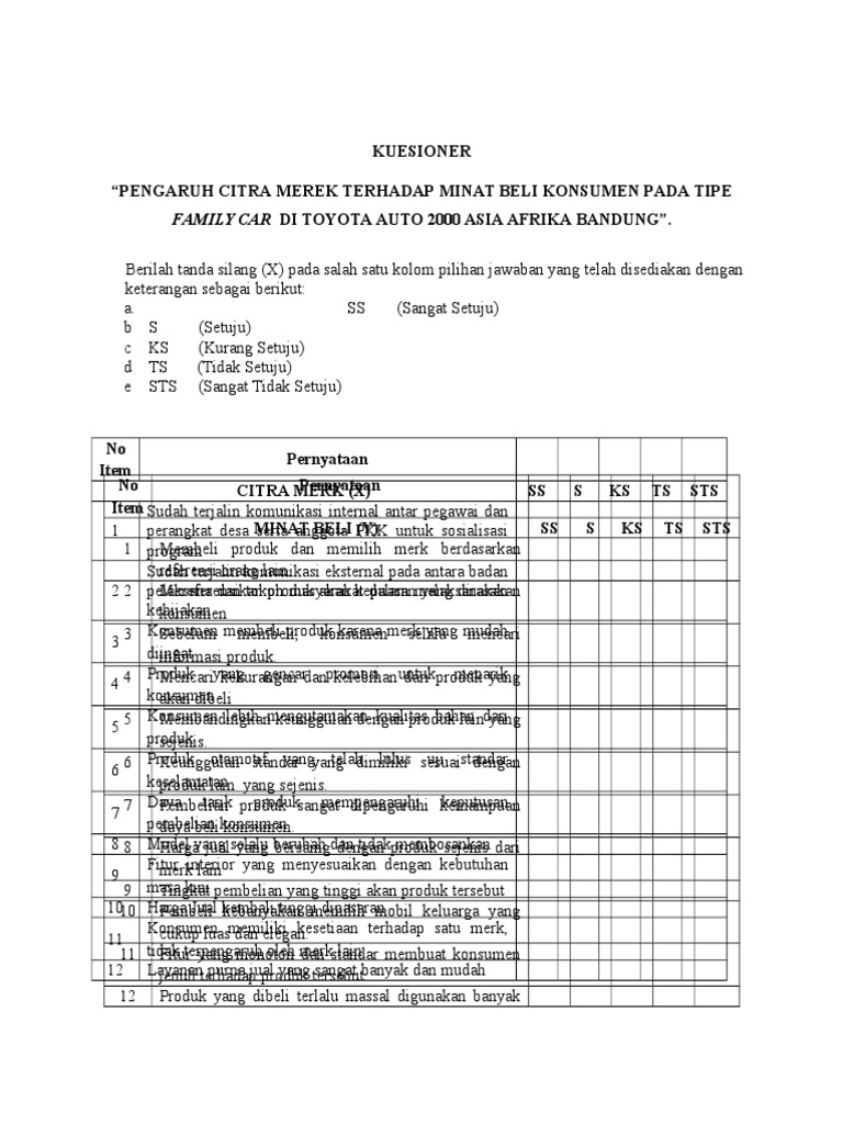 Contoh kuesioner citra merek. Contoh tesis 7. Samsung pada mahasiswa fakultas. Kuesioner penelitian pengaruh harga dan citra merek terhadap keputusan brand switching smartphone android ke apple iphone dengan prestise sebagai variabel intervening studi kasus pada siswa siswi sman 1 madiun assalamualaikum wrwb. Pengaruh citra merek sikap konsumen dan asosiasi merek terhadap proses keputusan pembelian konsumen studi empiris pertimbangan mahasiswa unnes dalam pembelian laptop toshiba perkembangan merek merek laptop di indonesia relatif cukup baik dan dinamis baik untuk produk lokal maupun internasional. Pengaruh citra merek brand image k ualitas pelayanan lokasi dan faktor pribadi terhadap keputusan pembelian konsumen pada kfc gelael bandar lampung tahun 2015 skripsi oleh nurmalia pajrin fakultas keguruan dan ilmu pendidikan universitas lampung bandar lampung 2016. Kuesioner pengaruh harga kualitas produk dan citra merek terhadap keputusan pembelian kecap manis merek bango studi kasus para ibu rumah tangga di komplek villa mutiara johor ii dan taman johor mas bersama ini saya meminta kesediaan ibu untuk mengisi daftar kuesioner yang diberikan.