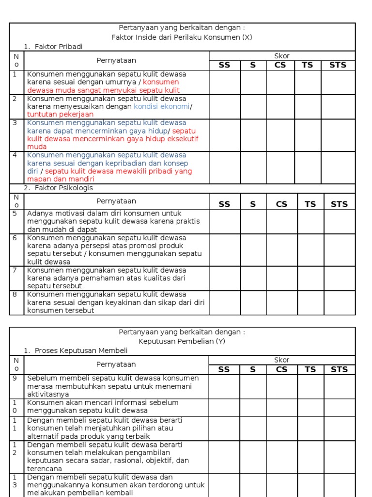 Contoh kuesioner penelitian skripsi kinerja karyawan kepuasan pelanggan terbuka kualitas pelayanan pemasaran produk keputusan pembelian akuntansi evaluasi. Kuesioner analisis perilaku konsumen terhadap keputusan pembelian sepatu merek converse dikota malang dengan hormat dalam kesempatan ini saya mohon bantuan dari bapakibusaudara untuk meluangkan waktu guna mengisi angket yang saya sertakan berikut ini.