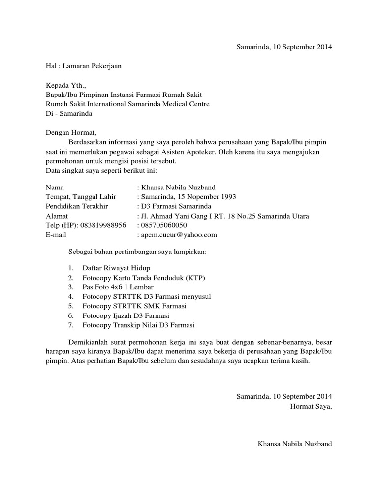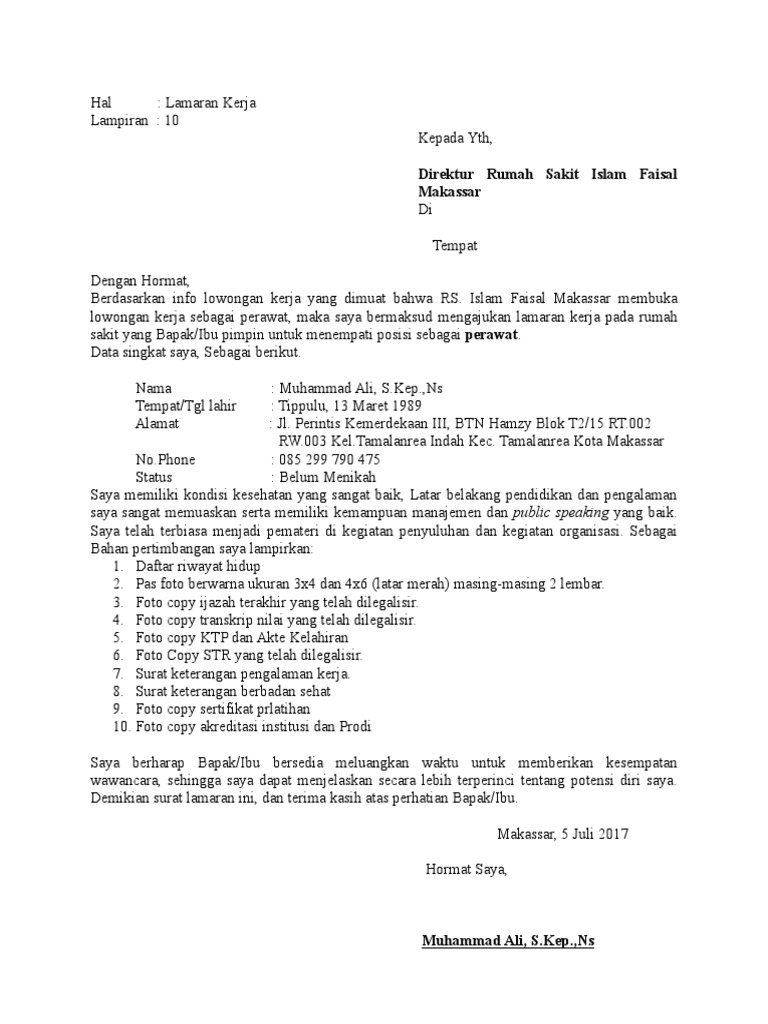 Contoh surat lamaran kerja sangat dibutuhkan bagi kamu yang ingin mendapatkan pekerjaan terutama di rumah sakit. Ketika kamu telah lulus dari jenjang pendidikan kedokteran keperawatan atau kebidanan pasti telah berencana untuk melamar pekerjaan di rumah sakit. Ya sama seperti posisi yang lain siapapun yang ingin bekerja sebagai perawat harus membuat surat lamaran kerja terlebih dahulu. Kepala hrd rsu pmi bogor. 7 lembar di bogor. Contoh surat lamaran kerja ini dibuat tentu saja untuk menjadi referensi bagi anda yang sedang mencari panduan untuk membuat surat lamaran kerja.