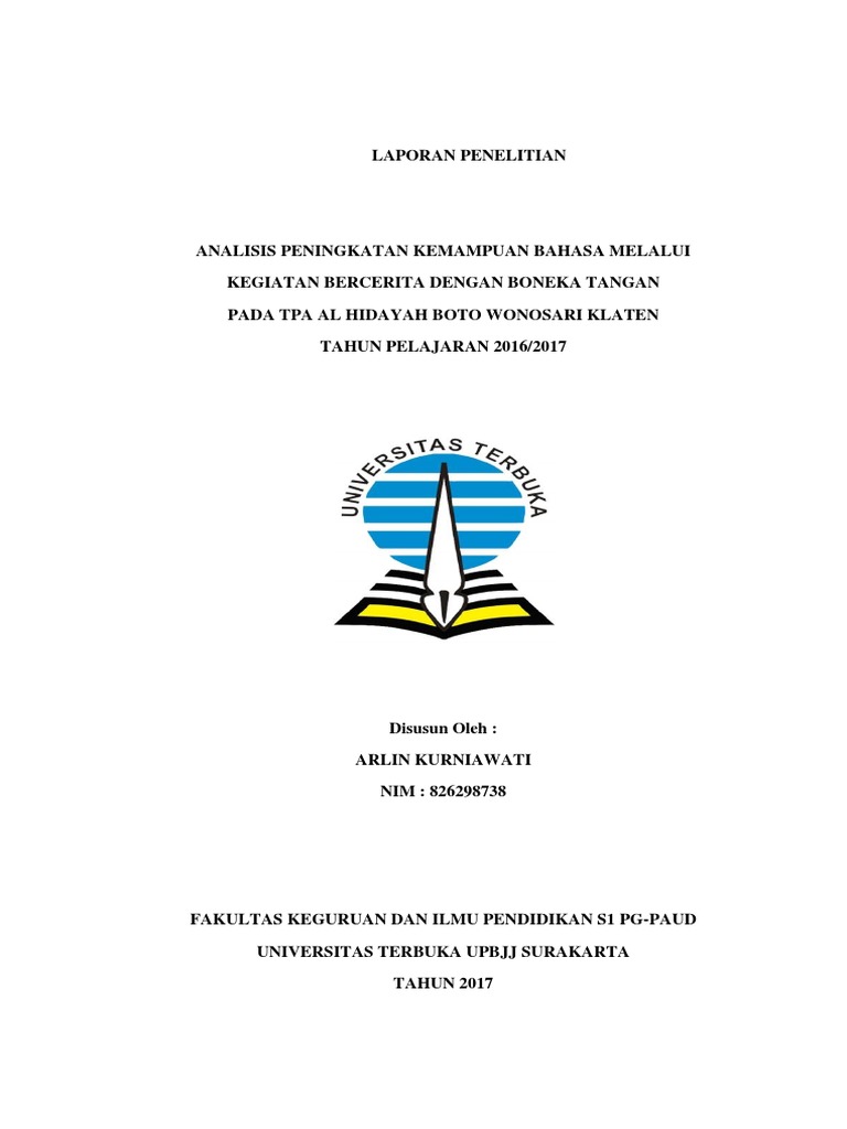 B ahwa dalam proses di tpa hendaknya pengasuh memberikan kesempatan seluas luasnya pada semua anak untuk mendapat stimulasi yang tepat oleh lingkungannya. Contoh bentuk laporan qc untuk kontraktor. Penelitian ini bertujuan untuk menambah pengetahuan dan sebagai bekal pengalaman calon pendidik anak usia dini. Laporan penelitian ini disusun dalam rangka memperoleh nilai mata kuliah analisis kegiatan pengembangan kemampuan pendidikan anak usia dini yang merupakan mata kuliah bagi mahasiswa fakultas keguruan ilmu pendidikan universitas terbuka upbjj semarang. Laporan penelitian dan analisis. Laporan analisis pada tpa.