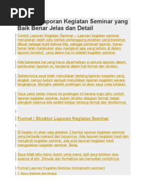 Contoh laporan hasil kegiatan seminar. Contoh laporan kegiatan seminar laporan kegiatan seminar merupakan salah satu bentuk pertanggung jawaban yang biasanya dibuat sebagai bukti bahwa kita sebagai pembuat laporan benar benar telah melakukan atau mengikuti apa yang tertulis di dalam laporan tersebut yang dalam hal ini adalah kegiatan seminar. Laporan ini kami buat sebagai sarana pertanggung jawaban atas kegiatan seminar sehari yang telah terselengarakan dalam laporan ini pula kami telah paparkan secara jelas seluruh kegiatan tersebut baik sebelum acara maupun sesudah acara di selengarakan guna mengadakan evaluasi terhadap kegiatan tersebut. Minggu 8 maret 2020 waktu. Tema kegiatan seminar adalah pelatihan penggunaan aplikasi telegram untuk bisnis b. Ada beberapa hal yang harus diperhatikan si penulis laporan dalam pembuatan laporan. Contoh notulen yang benar untuk anda yang terbiasa melakukan kegiatan berorganisasi seperti seminar diskusi maupun rapat tentu sudah tidak asing lagi dengan yang namanya notulen dan berita acaraunuk masalah berita acara rapat sudah pernah kita bahas di postingan sebelumnya oleh sebab itu kali ini kita akan membahas cara membuat notulen yang baik dan benar.