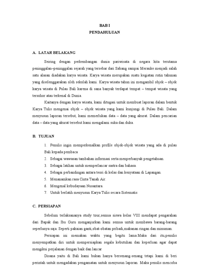 Kesimpulan yang telah saya peroleh dari perjalanan study tour saya ke yogyakarta yaitu. Setiap penulisan sesuatu pasti mempunyai tujuan tertentu dengan demikian juga penulisan laporan karya tulis ini penulis mempunyai tujuan. Contoh laporan prakerin di bank kumpulan tugas tugas sekolah source. Puji syukur ke hadirat tuhan yang maha esa dengan limpahan karunia nya karya tulis ilmiah sederhana ini dapat terselesaikan secara maksimal dan didukung oleh keluarga sayabapak dan ibu guru panitia penyelenggara karya wisata serta ibu sri madu ratnawati spd. Contoh karya tulis wisata ke yogyakarta airport contoh karya tulis wisata ke yogyakarta tour contoh karya tulis wisata kediri contoh karya tulis wisata kebumen. Ini terbukti dengan tidak sedikitnya laporan ke pihak kepolisian terdekat soal pencopetan atau penodongan.