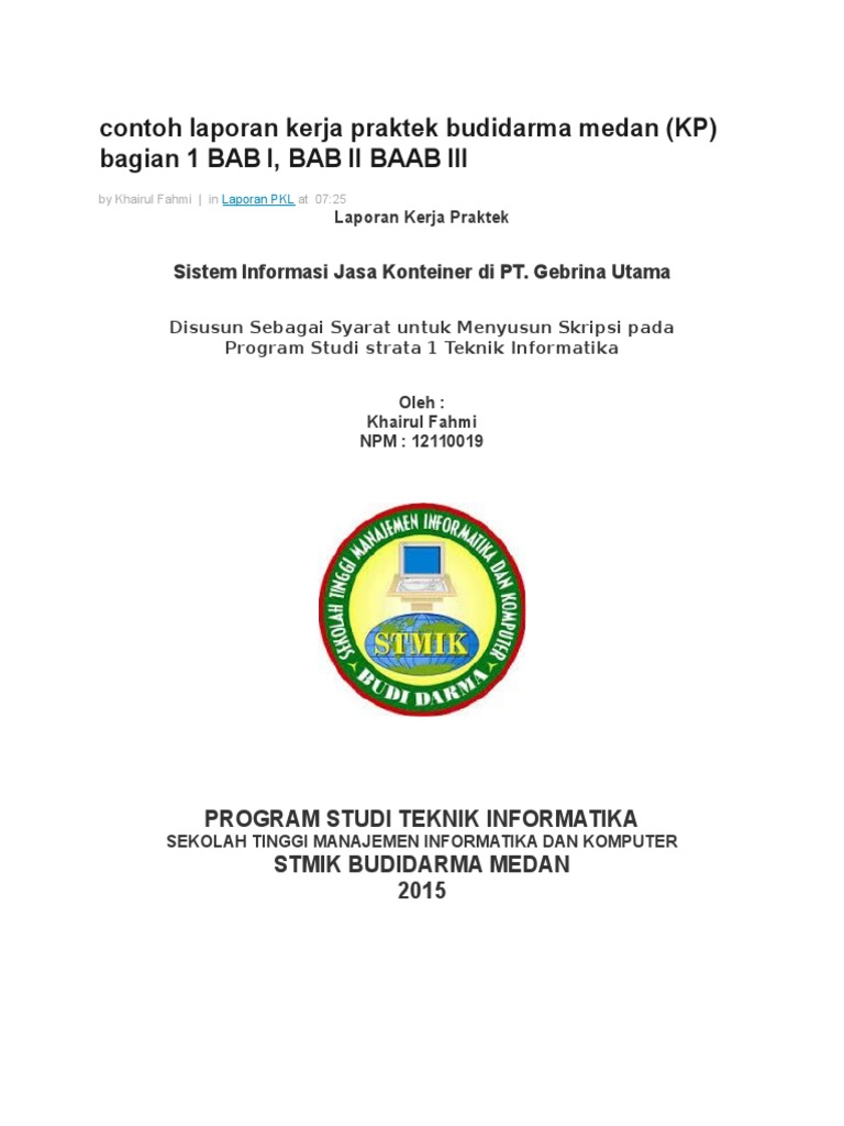 Contoh laporan kerja praktek teknik informatika. Misal ekonomi manajemen perbankan akuntansi. Unknown july 24. Begitulah yang dapat admin bagikan terkait contoh judul laporan kerja praktek teknik informatika. Contoh laporan pkl teknik informatika bab i. Mana contoh laporannya. Laporan kerja praktek kpteknik informatika rancang bangun sistem informasi tata usaha client server.