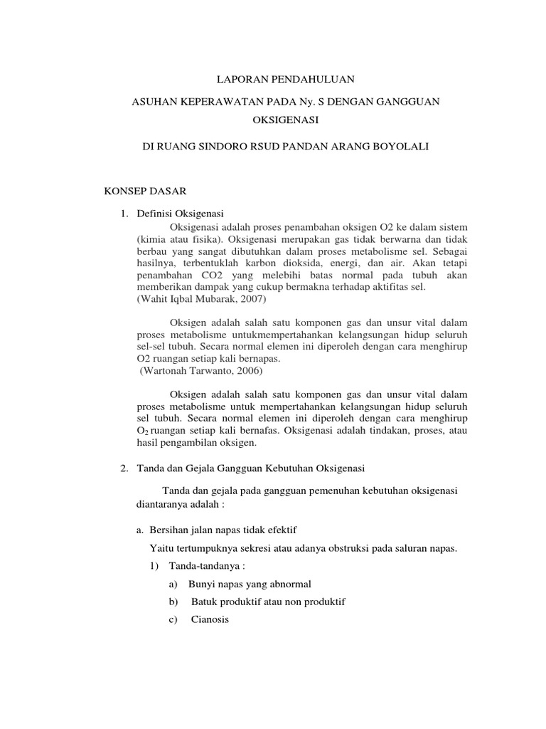 Contoh laporan pendahuluan oksigenasi. Laporan pendahuluan oksigenasi laporan pendahuluan. Dengan gangguan pemenuhan oksigenasi. Laporan pendahuluan chf congestive heart failure a. Laporan pendahuluan asuhan keperawatan pada pasien dengan kebutuhan eliminasi disusun oleh. Kebutuhan fisiologis oksigenasi merupakan kebutuhan dasar manusia yang digunakan untuk kelangsungan metabolisme sel tubuh untuk mempertahankan hidupnya dan untuk aktivitas berbagai organ atau sel. Laporan pendahuluan gangguan pemenuhan oksigenasi minggu 03 juni 2012.
