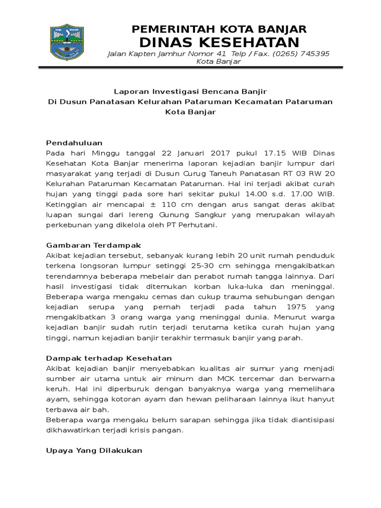 Contoh laporan peristiwa banjir. Untuk pernyataan umum sendiri memang singkat. Akan tetapi dapat pula tidak membahayakan. Harapan kami kiranya bapak dapat membantu untuk meringankan penderitaan yang dialami oleh korban. Misalnya seperti laporan pengamatan study tour karya wisata kegiatan kejadian kerja peristiwa dan sebagainya. Peristiwa alam dapat bersifat merugikan dan membahayakan. Apalagi pada saat ini sudah berubah menjadi era digital dimana segala hal pernak pernik dari kemajuan teknologi akan kian memudahkan semua orang untuk dapat mendapatkan atau mengakses sebuah berita apapun kapanpun dan juga dimana pun.