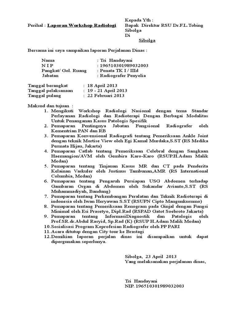 Contoh laporan perjalanan dinas monitoring dan evaluasi. Detail artikel terkait contoh laporan perjalanan dinas dalam daerah pns. Kumpai batu atas. Asam kampung lab. Gayaformat apapun yang dipilih laporan harus memiliki beberapa fitur umum yang meliputi tanggal pembuatan laporan. Laporan hasil perjalanan dinas dalam rangka koordinasi dan evaluasi penyiapan penempatan dan perlindungan dokumen ctkitki keluar negeri pada dinas tenaga kerjatransmigrasi dan sosial kabhulu sungai tengah di barabai kalimantan selatan i. Contoh laporan hasil perjalanan dinas.