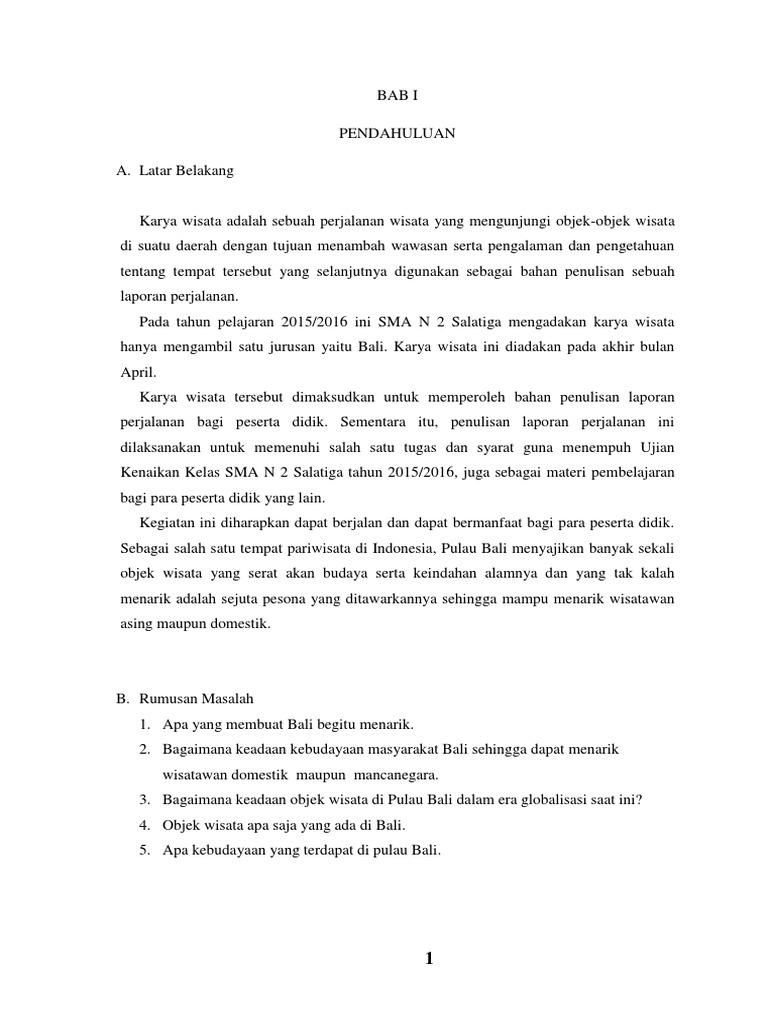 Contoh makalah study tour ke bali. Puji syukur kami panjatkan kehadirat allah swt atas karunia dan izin nya kami dapat membuat makalah tentang perjalanan wisata ke bali dengan baik. Contoh makalah study tour ke bali. Studi kenal alam lingkungan. Contoh laporan karya wisata ke bali sabtu 15 oktober 2016. Saat perjalanan tour ke wilayah badung selatan selanjutnya singgah di sini dua buah restaurant yaitu the berandas dan jendela bali memberikan pilihan sebagai tempat santap siang.