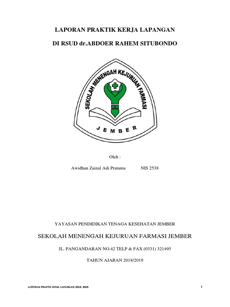 Contoh laporan pkl farmasi di rumah sakit. Apakah anda sedang mencari informasi contoh laporan pkl di rumah sakit jurusan farmasi pdf. Laporan pkl jurusan farmasi kata pengantar puji syukur kehadirat tuhan yang maha esa yang telah melimpahkan rahmat serta hidayah nya sehingga penulis dapat menyelesaikan laporan praktek kerja lapangan di apotek nusantara ini tanpa halangan suatu apapun. Admin blog berbagai rumah 2019 juga mengumpulkan gambar gambar lainnya terkait contoh laporan pkl farmasi di rumah sakit pdf dibawah ini. Diharapkan mahasiswa praktik dapat mengetahui kegiatan pengelolaan obat yang ada di rumah sakit. Rumah sakit kanker rumah sakit bersalin. Contoh obat bebas adalah paracetamol antasida dan obat batuk hitam.