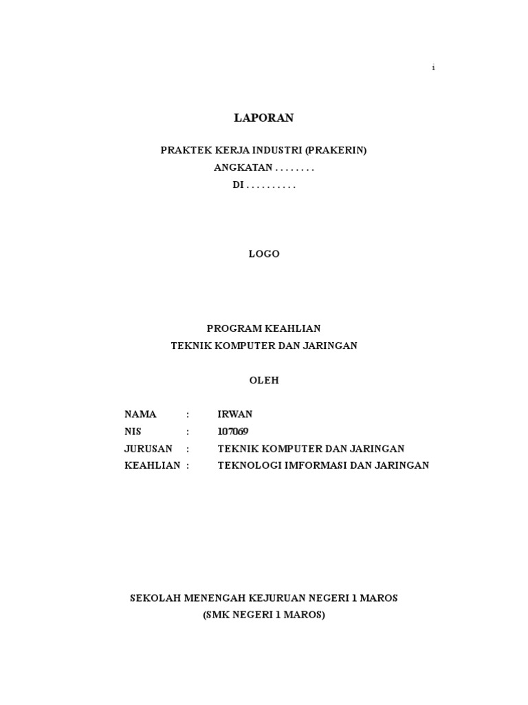 Contoh laporan praktek kerja industri smk. Struktur program kurikulum kalender pendidikan pada tahun ajaran tersebut akan disesuaikan dengan situasi dan kondisi keadaan setempat. Sudah menjadi kewajiban seorang siswa membuat laporan kegiatan selama melakukan praktek kerja industri atau prakerin. Kegiatan prakerin ini biasa di lakukan oleh siswa siswi yang bersekolah di sekolah menengah kejuruan atau sering disebut dengan smk. Praktek kerja lapangan atau sering disingkat prakerin dilakukan dalam rangka untuk mendekatkan kesesuaian antara mutu dan kompetensi siswapendidikan sekola menengah kejuruan atau smk dengan kebutuhan di dunia usaha dan dunia industri praktek kerja lapangan di laksanakan pada tanggal 15 oktober 2018 sampai dengan 14 januari 2019 tempat pelaksanaan prakerin di hotel berbintang atau pun badget. Contoh laporan praktik kerja industri smk prakerin program studi dkv 1. Laporan prakerin sifatnya adalah wajib jadi siswa harus mengumpulkan laporan prakerin sebagai bukti pertanggung jawaban ilmu apa saja yang sudah didapatkan semasa pkl.