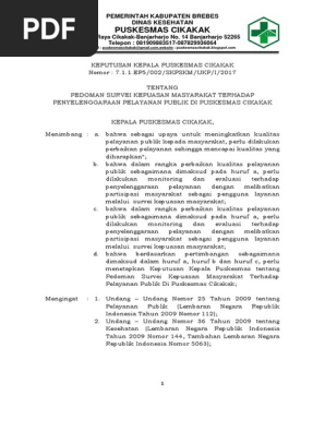 Kuisioner survei kepuasan masyarakat di sman 1 gondang mojokerto tahun 2014 2015. Mengetahui gambaran kepuasan masyarakat yang diperoleh dari hasil pengukuran atas pendapat masyarakat terhadap mutu dan kualitas pelayanan kesehatan yang telah diberikan oleh rumah sakit jiwa sambang lihum provinsi kalimantan selatan pada tahun 2016. Pelaksanaan kegiatan pembentukan tim penyusunan ikm kegiatan survey indeks kepuasan masyarakat ini dimulai pada tanggal 31 maret 2017 dimulai dengan pembentukan tim penyusun indeks kepuasan masyarakat yaitu berupa keputusan kepala dinas pertanian pangan kelautan dan.