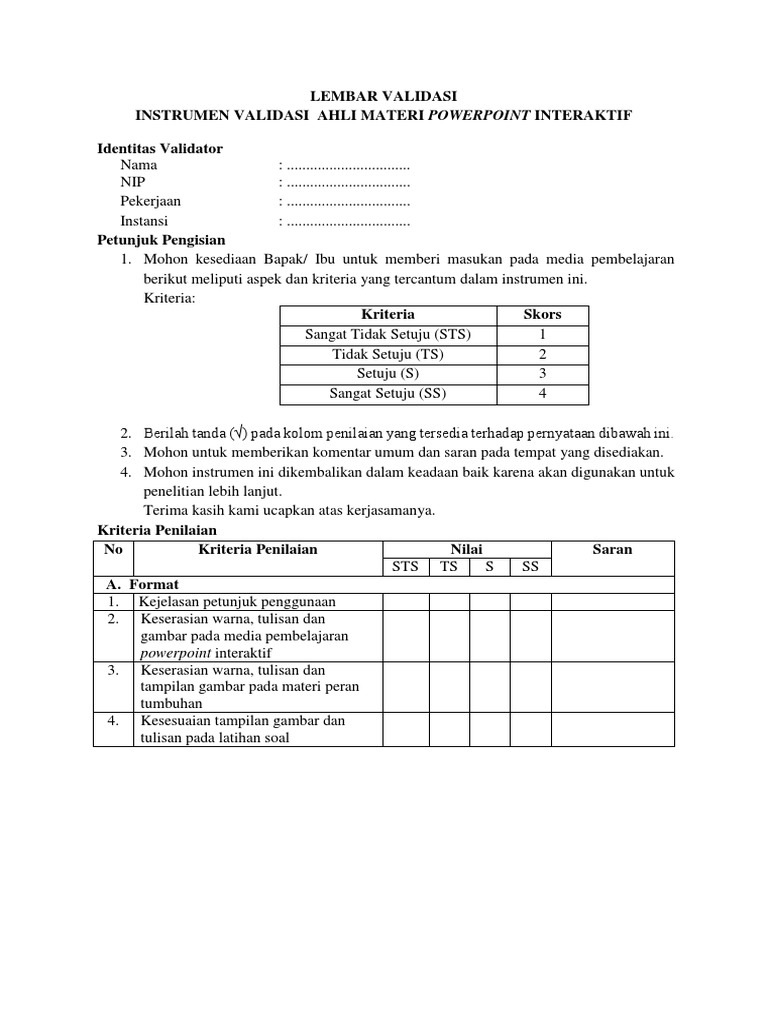 Lembar validasi dan penilaian pengembangan media pembelajaran lembar validasi ahli aspek isi materi. Keakuratan notasi simboldan ikon. Kesesuaian langkah penyaji an materi dengan pendekatan saintifik dan pendekatan berbasis genre. Contoh surat izin tidak masuk kerja pns. Keakuratan gambar diagram dan ilustrasi. Dalam mengukur kemampuan siswa dalam matematika kemudian dengan diberikan soal bersifat kalimat panjang begitu berbelit belit.