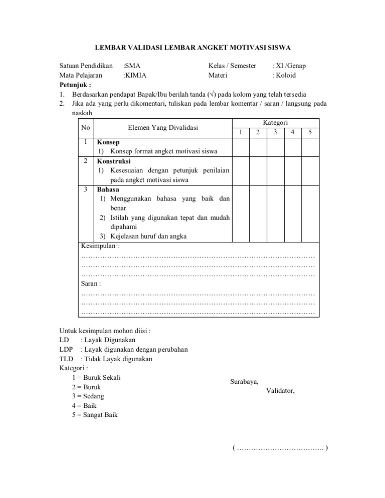 Validitas instrumen dan penelitian kependidikan blog penelitian tindakan kelaspenggunaan instrumen instrumen non tes seperti angket lembar observasi pedoman observasi dan pedoman wawancara dalam kegiatan penelitian pendidikan kini banyak digunakan oleh mahasiswa jurusan kependidikan guru dosen maupun praktisi pendidikan lainnya. Hasil validasi instrumen tes kemampuan penalaran matematis. Academiaedu is a platform for academics to share research papers. Dalam artikel ini saya akan mengeksplorasi berbagai alat penelitian dalam penelitian sosial. Maka proses validasi konstruk sebuah instrumen dilakukan melalui. Pedoman wawancara angket atau kuesioner lembar observasi daftar cocok check list skala sikap skala penilaian dan sebagainya.