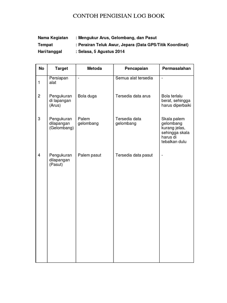 Contoh log book kegiatan harian. Contoh laporan singkat kegiatan jika kita bekerja pada sebuah institusi atau berorganisasi di sekolah setiap kegiatan yang diselenggarakan baik itu kegiatan pelatihan bakti sosial pramuka lomba 17 agustus dan acara acara lainnya pasti selalu dimintai pertanggungjawabannya entah itu berupa laporan tertulis ataupun dokumentasi berupa foto. Secara teknis log book penelitian dapat disajikan seperti pada gambar 3 atau dapat pula dibuat sebagaimana pada gambar 4. Kegiatan pelatihan dokter kecil di sd x lorong y gampong z yang dilakukan dalam beberapa kali pertemuan misalnya 3 kali seminggu x 1 bulan 12 kali pertemuan sehingga kegiatan ini dapat poin 25. Untuk terlaksana kegiatan dengan baik maka melakukan konsultasi dengan dosen pembimbing guna membicarakan mekanisme kerja kegiatan pkm p. Contoh kegiatan sama dengan sasaran peserta yang sama. Teknis membuat log book puslitpen uin sunan gunung djati bandung mengembangkan sistem log book penelitian berbasis aplikasi pada website lp2m.
