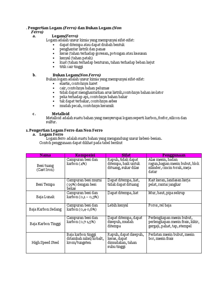 Logam adalah unsur yang memiliki sifat mengkilap dan umumnya merupakan penghantar listrik dan penghantar panas yang baik. Unsur semi logam memiliki sifat antara logam dan non logam. Logam dan non logam adalah jenis sifat perbedaan contoh untuk pembahasan kali ini kami akan mengulas mengenai apresiasi yang dimana dalam hal ini meliputi pengertian sifat jenis dan contoh nah agar dapat lebih memahami dan dimengerti simak ulasan selengkapnya dibawah ini. Salah satu contohnya adalah barang elektronik yang mempunyai unsur logam didalam dan banyak contoh lainya. Logam non ferro laksana emas perak dan platina tidak butuh dicampurkan sebab sudah mempunyai sifat yang paling baik. Coba sebutkan beberapa contoh unsur logam lain yang ada di sekitarmu.
