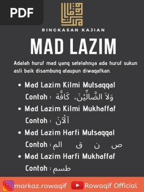 Contoh mad lazim harfi mukhaffaf. Mad lazim mutsaqqal harfi. Dari sekian banyaknya amal ibadah salah satu ibadah yang wajib diamalkan oleh setiap muslim adalah membaca al quran. Jika diperhatikan pada mad lazim harfi yang berlaku pada huruf huruf secret letter di awal 29 surah mungkin tertanya tanya bagaimana cara untuk membezakan antara mukhaffaf dan muthaqqal. Contoh contoh dari hukum mad lazim muthawwal atau mad lazim kilmi mutsaqqal diatas kami ambil dari surat surat pendek juz amma dan juga beberapa surat dalam al quran supaya kita semua dengan mudah mempelajari tentang hukum mad khususnya mad lazim muthawwal atau mad lazim kilmi mutsaqqal. Tentu masih diingat tentang hukum bacaan mad lazim musaqqal ciri utamanya adalah adanya mad yang bertemu tasydid atau diidighamkan.