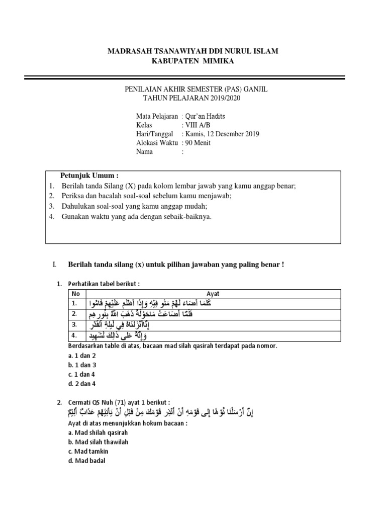 Buku pedoman dauroh quran dan hasil diskusi bersama grup pretajwid tahsin imsis. Dalam artikel kali ini saya akan kembali membahas tentang salah satu bacaan mad dengan judul contoh mad silah qasirah beserta suratnya. 30 contoh mad badal dalam al quran beserta surat dan ayatnya minggu 23 september 2018 al quran contoh mad secara pengertian mad badal merupakan bacaan hamzah yang dipanjangkan. Contoh mad lazim mukhaffaf kilmi beserta suratnya. Makna dari hukum bacaan mad terbagi menjadi dua. Namun karena mad tamkin dihitung 2 ketukan huruf bertasydid mendapatkan hak 2 ketukan maka potongan ayat tersebut harus dibaca dalam 10 ketukan yang sama rata dan teratur.