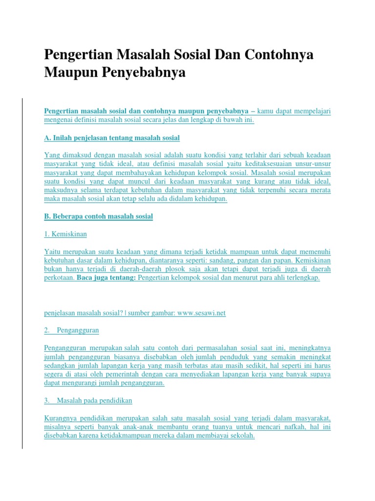 Dan konflik ini dapat terjadi karena ketik susaian dengan harapan individu atau kelompok dengan kenyataan sosial yang ada. Penyebab masalah sosial pada umumnya yang ada di masyarakat karena adanya rasa ketidaksesuaian antara keinginan dengan kenyataan yang ada di dalam lingkungan masyarakat sehingga kondisi ini memunculkan beragam dinamika dinamika yang mengancam dalam keteraturan sosial. Ada banyak masalah yang terjadi di sekolah baik antar siswa siswi atau pun masalah aturan sekolah tata tertib yang dilanggar. Tawuran antar pelajar adanya siswa yang sering bolos saat jam pelajaran berlangsung adanya gengkelompok antarsiswa siswa yang tidak mampu membeli buku pelajaran karena tidak mempunyai biaya berasal dari keluarga tidak mampu pergaulan bebas remaja yang mengakibatkan siswi hamil di luar nikah dll. Banyak contoh kasus yang menjadi masalah yang diakibatkan oleh pemerosotan moral. Permasalahan sosial adalah keadaan yang tidak kondusif yang terjadi di.