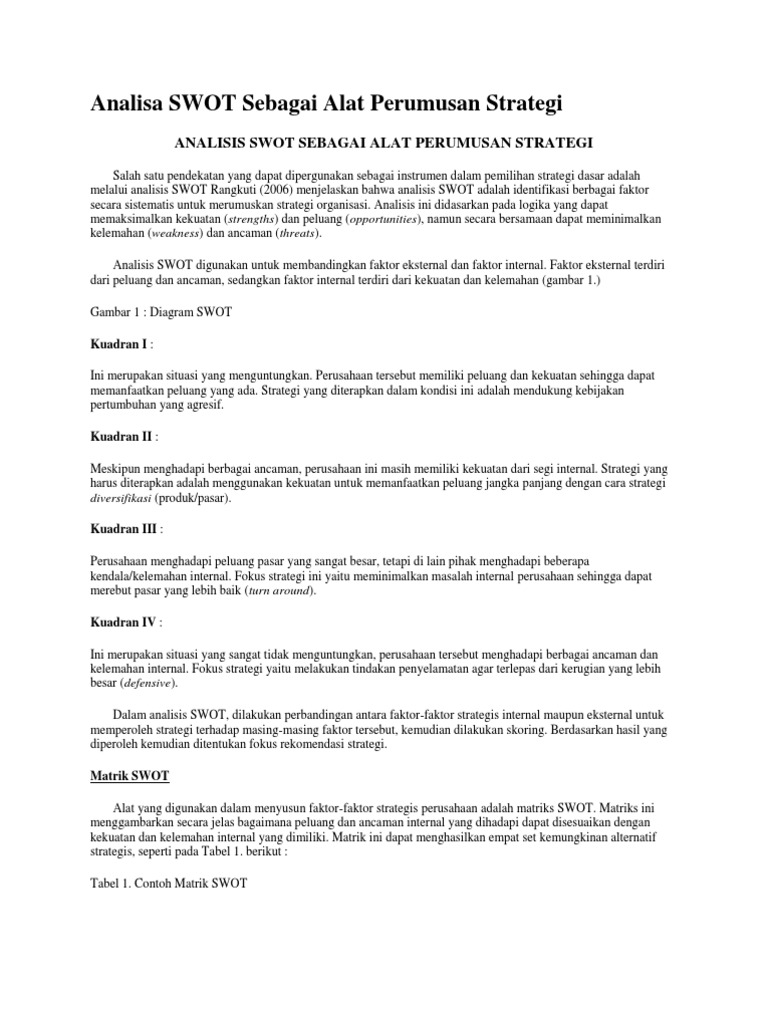 Analisis swot terdiri dari 4 komponen dasar yaitu. Ini hanya contoh saja analisis yang saya tuliskan tidak sepenuhnya benar ada pada perusahaan yang dimaksud. Pada mulanya analisis swot pertama kali di perkenalkan pada tahun 1960 an oleh albert s humphrey ketika sedang memimpin proyek riset di standford research institute yang memanfaatkan data dari perusahaan fortune 500. Dipercaya dalam hal cita rasa indonesia 2. Ruang lingkup bisnis tunggal tersebut iyalah berupa domestik ataupun multinasional.