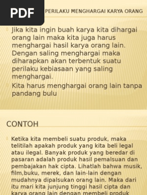 Kita wajib menghargai dan menghormati hasil karya orang lain karena dengan sikap seperti itu kehidupan akan berjalan dengan tenteram dan damai karena setiap orang. Cara menghormati orang lain. Menghormati orang lain berarti menghargai perspektif waktu dan privasi orang lain. Contoh contoh perilaku menghargai karya orang lain menghargai karya orang lain dapat tercermin pada perilaku perilaku berikut ini. Islam memberikan sanksi bagi siapa saja yang berusaha. Menumbuhkan sikap menghargai hasil karya orang lain merupakan sikap yang terpuji karena hasil karya tersebut merupakan pencerminan pribadi penciptanya sebagai manusia yang ingin dihargai.