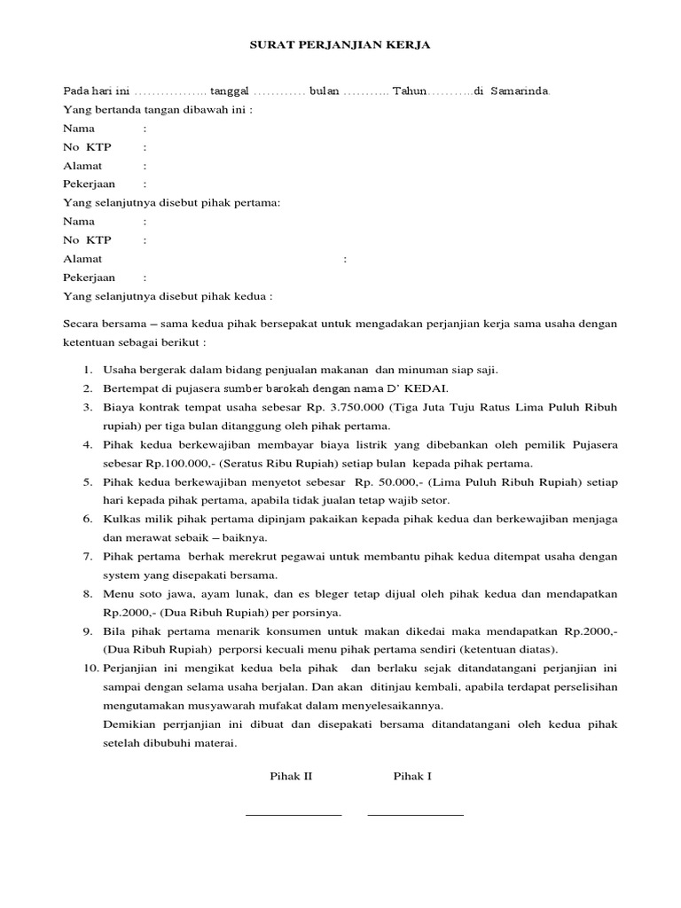 Contoh surat perjanjian kerjasama usaha ini dibuat sebagai bahan panduan bagi siapa saja yang ingin mulai menjalankan usaha bersama. Melakukan kerjasama dibagian usaha atau bisnis memang lebih baik menggunakan surat perjanjian.