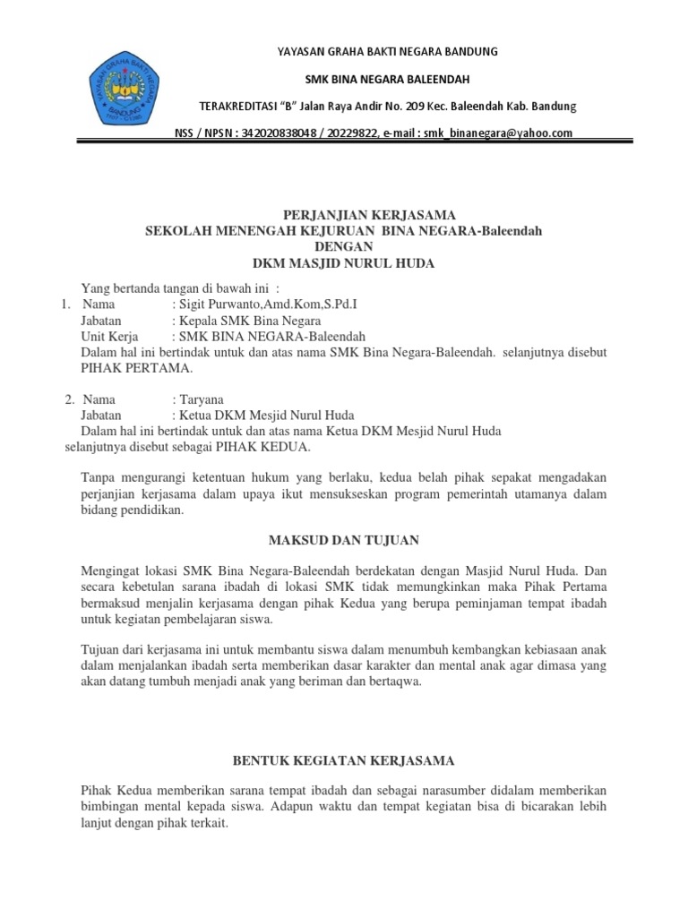 Contoh mou lembaga pendidikan. Contoh surat pernyataan kerja contoh surat dinas contoh surat lamaran kerja pengertian dan penggunaan perjanjian kerjasama secara sederhana. Contoh program kerja sama mou dengan lembaga pemerintah swasta dunia usaha masyarakat dan instansi lainnya program kerja sama mou dengan lembaga pemerintah sewasta dunia usaha dan masyarakat atau yang lainnya harus ada dalam suatu instansi pendidikan dari paud tkra sdmi sampai tingkat perguruan tinggi sebagai salah satu bukti fisik instrumen akreditasi yang dilaksanakan oleh. Contoh mou kerjasama antar lembaga. Download contoh surat kerjasama sekolah dengan berbagai pihak contoh kerja sama sekolah dengan pihak bri pada pembahasan kali ini kita akan lebih fokus membahas tentang pengertian kerja sama sekolah dengan berbagai pihak contoh contoh surat kerja sama antara sekolah dengan berbagai pihak yang berada di sekitar lingkungan sekitar maupun secara global. Dalam sebuah kesepakatan baik itu dilakukan antar perorangan atau perusahaan adanya perjanjian dalam bentuk tertulis adalah hal yang utama. Home administrasi kerjasama sekolah mou kesehatan perjanjian kerjasama contoh surat perjanjian kerjasama sekolah dengan puskesmas.